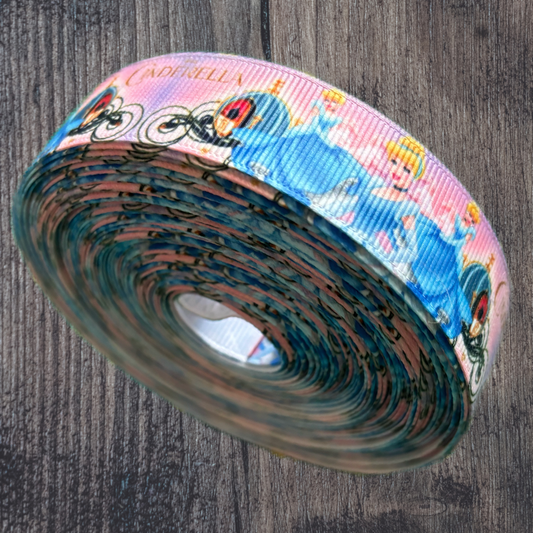 Cinderella Pink Background Grosgrain 22mm Ribbon