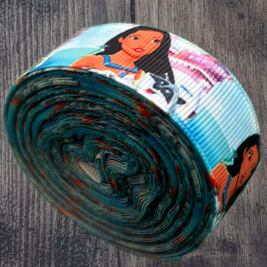 Pocahontas with Blue Background Grosgrain 22mm Ribbon