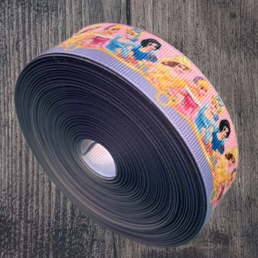Princesses Characters with Purple Bottom Grosgrain 25mm Ribbon