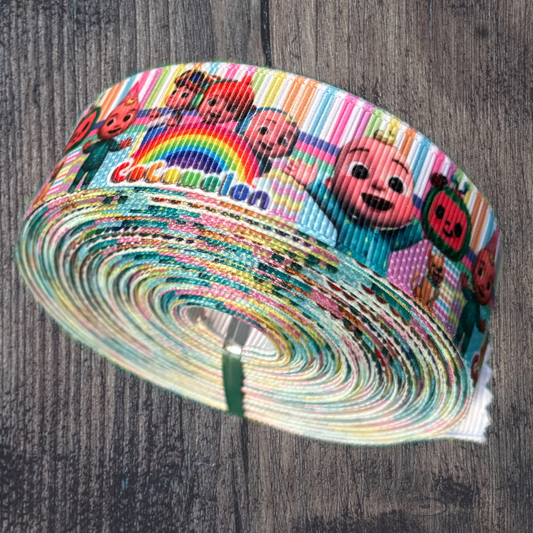 Melon Kids with Rainbow and Characters Grosgrain 25mm Ribbon