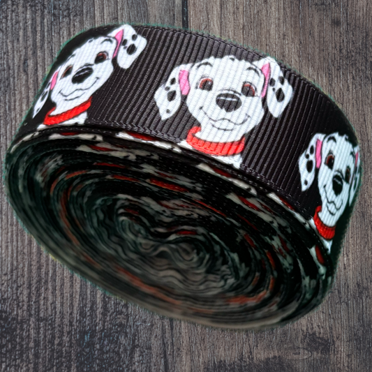 Dalmatian with Black Background Grosgrain 22mm Ribbon