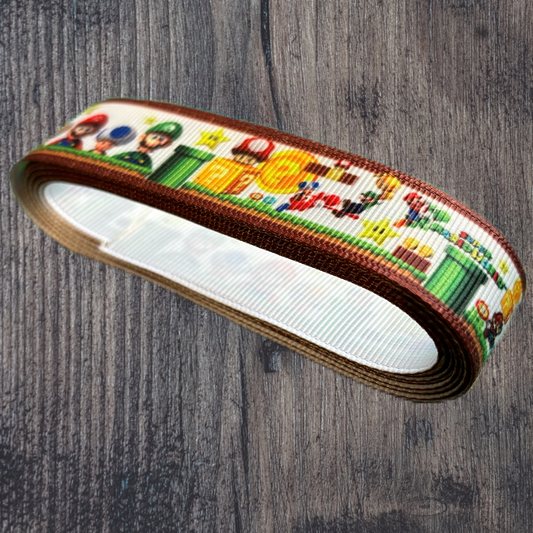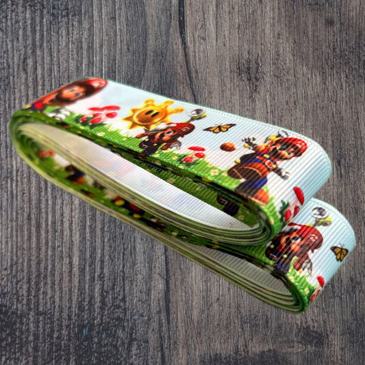 Mario with Sky Background Grosgrain 25mm Ribbon