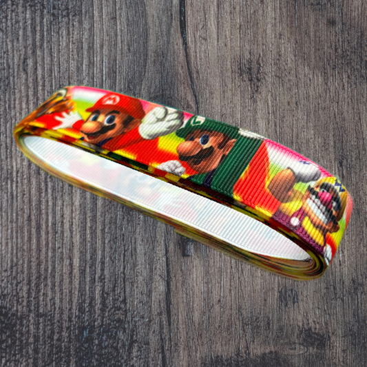 Mario with Pink/Red Background Grosgrain 22mm Ribbon