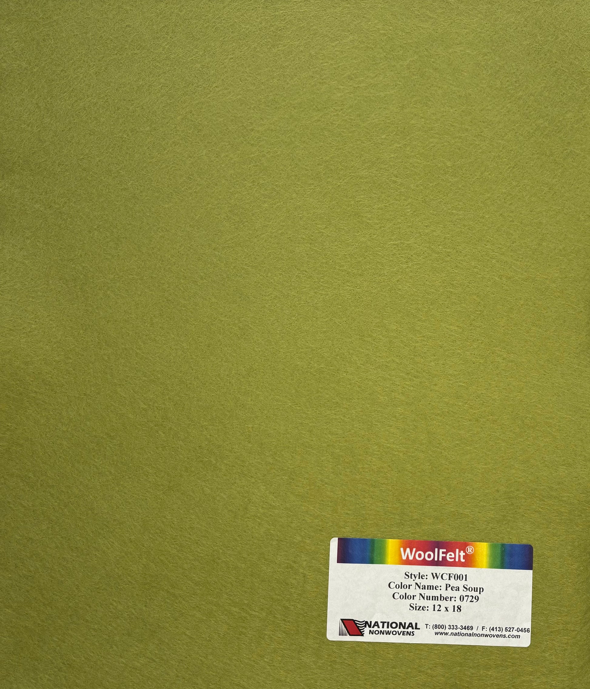 National Nonwovens Pea Soup felt sheet 12” x 18”.